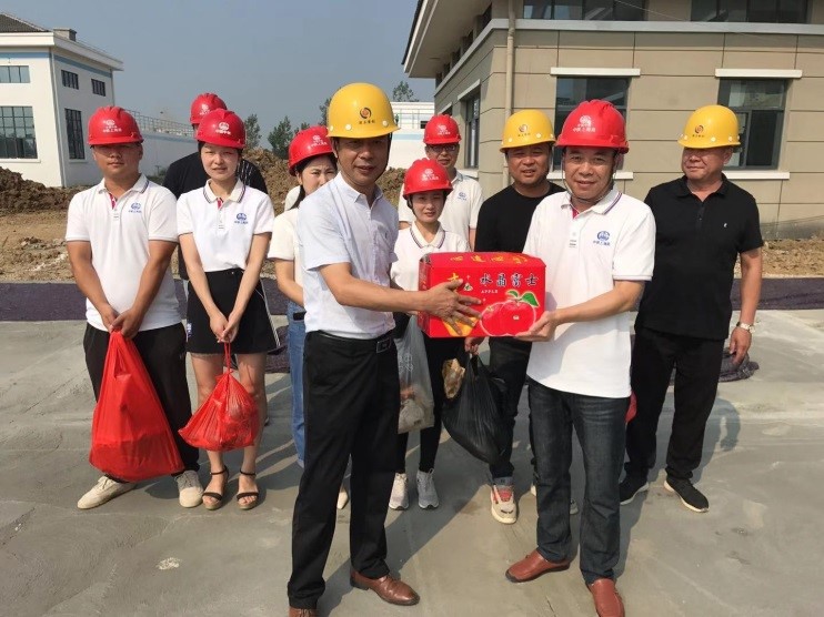 9月13日,潁上首創(chuàng)水務(wù)公司總經(jīng)理林猛一行到公司承建的潁上縣城市地表水廠項目慰問項目員工。林猛為員工送上月餅、雞肉、魚等慰問品,并對大家在節(jié)日期間依然堅守崗位工作表示感謝,同時也衷心的祝愿大家中秋愉快。他強調(diào)在節(jié)日工作期間也要嚴(yán)格把控安全工作,真正實現(xiàn)有序搶工,