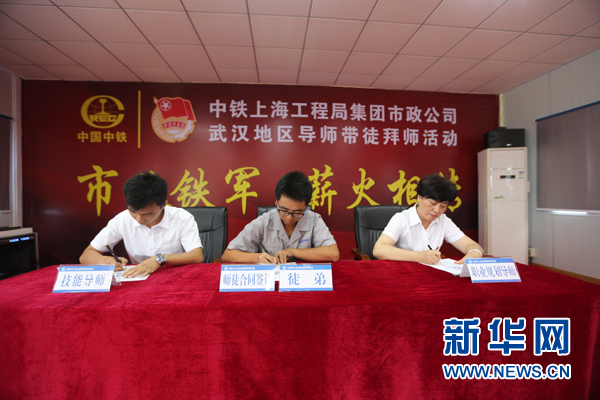 8月31日上午10時(shí),在中鐵上海局市政公司武漢地鐵蔡甸線七標(biāo)項(xiàng)目部“市政鐵軍 薪火相傳”拜師活動(dòng)現(xiàn)場(chǎng),13名新入職大學(xué)生與他們的專(zhuān)業(yè)指導(dǎo)師父和職業(yè)規(guī)劃導(dǎo)師共同簽訂師徒合同,正式拉開(kāi)了工地“導(dǎo)師帶徒”推行雙導(dǎo)師制的序幕。拜師現(xiàn)場(chǎng),師父還送給徒弟工地“文房四寶”——卷尺、...