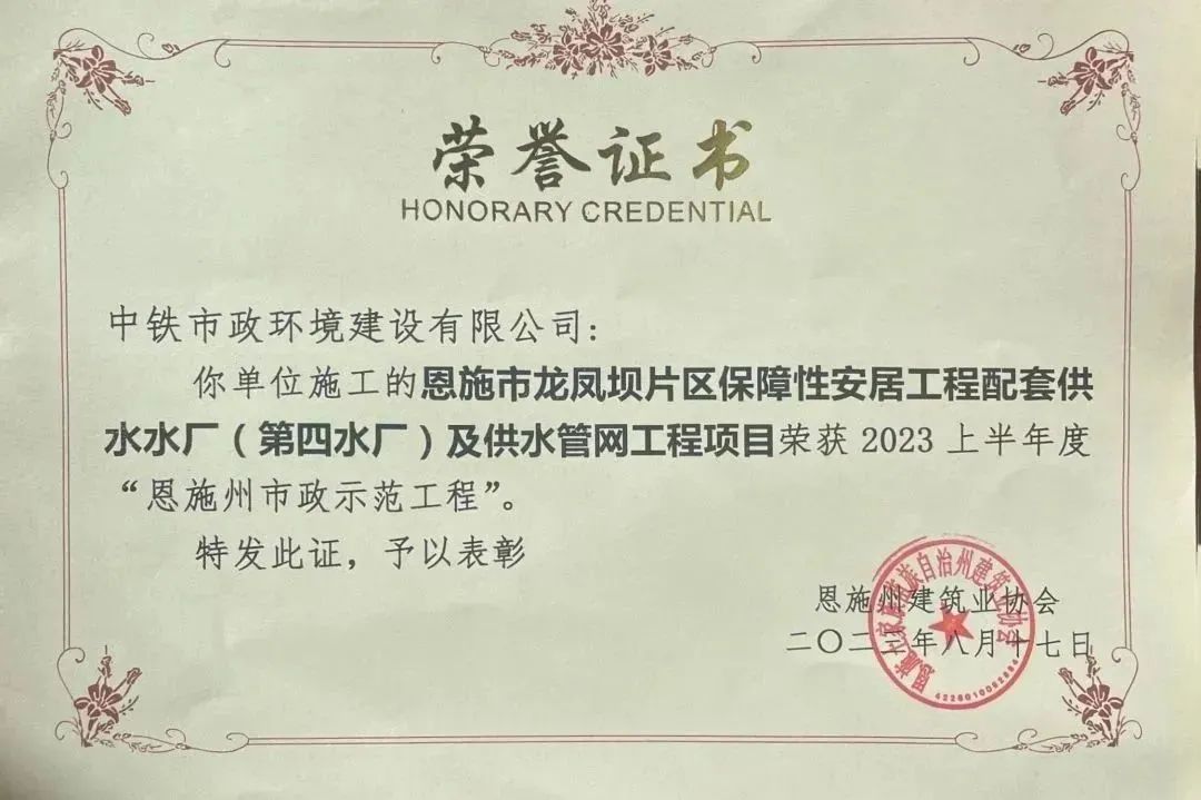 8月17日,公司承建的恩施市龍鳳壩片區(qū)保障性安居工程配套供水水廠(第四水廠)及供水管網(wǎng)工程項(xiàng)目榮獲 2023 上半年度“恩施州市政示范工程”。...
