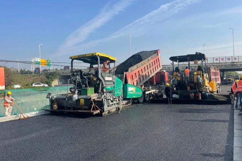 11月15日,經(jīng)過5小時緊張有序的施工,南京龍袍項目楊莊河路K0+220-K2+190東半幅機(jī)動車道瀝青上面層攤鋪施工圓滿完成。...