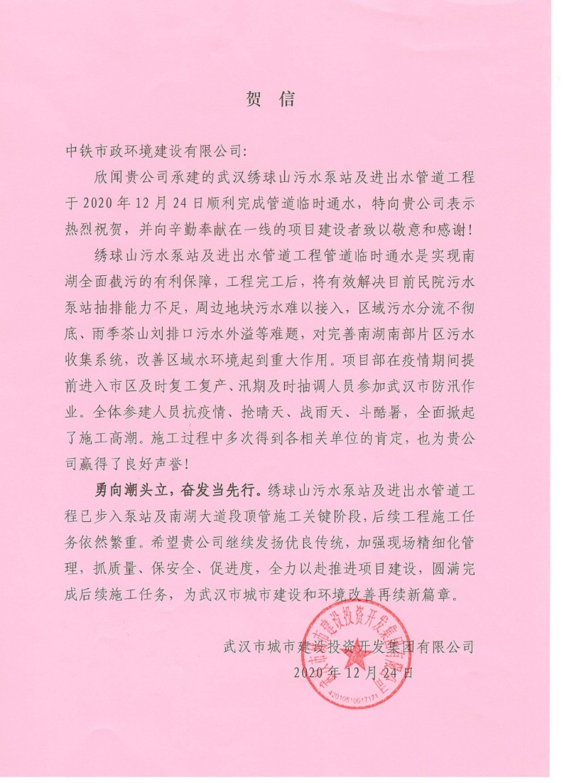 近日,山東公用水污染治理有限公司印發(fā)表彰文件,授予中鐵市政環(huán)境建設(shè)有限公司等三家單位“先進(jìn)”單位稱號(hào)。...