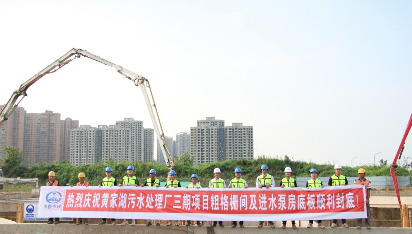 7月30日武漢黃家湖污水處理廠三期擴建工程項目粗格柵間及進水泵房第一塊底板順利封底。...