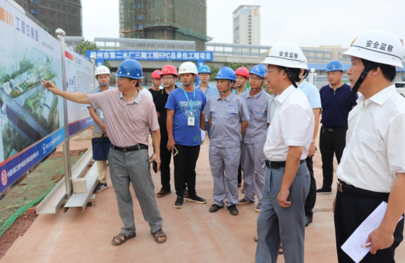 9月9日下午,贛州經(jīng)濟技術(shù)開發(fā)區(qū)管委會主任陳水連到公司承建的贛州第二水廠三期工程項目檢查指導工作,贛州經(jīng)開區(qū)住建局局長翁毅軍、水務(wù)集團副總經(jīng)理陳俊陪同。陳水連深入施工現(xiàn)場,聽取了項目工程概況、施工推進情況以及安全質(zhì)量管控等詳細匯報,重點查看了水廠的整體布局,以及水廠與客家大道交叉段控制性結(jié)構(gòu)聯(lián)絡(luò)通道的施工進度。陳水連強調(diào)安全責任大于天,在施工過程中,項目部要嚴格落實安全管控措施,確保施工安全,樹立良好的央企形象。同時要做到科學組織、務(wù)實求精、達標創(chuàng)優(yōu),確保水廠建設(shè)按期完成。