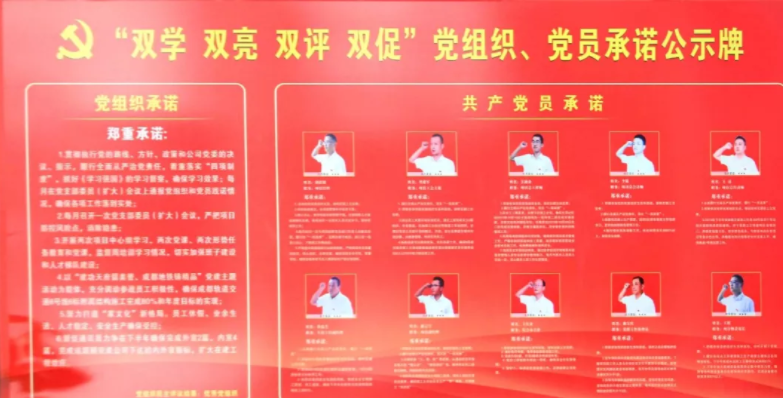 二是確?!半p亮”工作規(guī)范化、常態(tài)化。項(xiàng)目部嚴(yán)格按照規(guī)定每半年制定黨組織承諾、黨員承諾,定期檢查黨徽佩戴情況,桌牌擺放情況,時刻引導(dǎo)黨員“亮身份”,便于群眾的監(jiān)督。