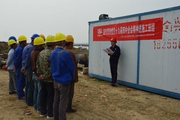 11月7日,潁上項(xiàng)目黨支部組織進(jìn)工區(qū)、進(jìn)班組活動(dòng)宣貫黨的十九屆四中全會(huì)精神。潁上水廠項(xiàng)目分為三個(gè)施工區(qū),相互距離較遠(yuǎn),且處于施工任務(wù)攻堅(jiān)的關(guān)鍵階段,為使黨的十九屆四中全會(huì)精神及時(shí)宣貫到項(xiàng)目的每名黨員干部、施工一線工人,落實(shí)黨的基層組織建設(shè),黨支部決定開(kāi)展宣貫進(jìn)工區(qū)、進(jìn)班組活動(dòng)。每到一處宣貫現(xiàn)場(chǎng),項(xiàng)目書(shū)記向大家宣講會(huì)議召開(kāi)背景、全會(huì)提出的總體目標(biāo)、工作要求等內(nèi)容,并結(jié)合專家解讀重申重點(diǎn)內(nèi)容,要求黨員干部統(tǒng)一思想和行動(dòng),以強(qiáng)烈的思想自覺(jué)、政治自覺(jué)和行動(dòng)自覺(jué),攻堅(jiān)克難、銳意進(jìn)取,為加快推進(jìn)項(xiàng)目施工建設(shè),力保通水目標(biāo)實(shí)現(xiàn)而努力奮斗。結(jié)合項(xiàng)目建設(shè)存在的問(wèn)題和面臨的困難,項(xiàng)目書(shū)記對(duì)項(xiàng)目下步工作做出以下部署:一是聚焦思想,項(xiàng)目部全體員工要認(rèn)真貫徹落實(shí)會(huì)議精神,以精神促思想,以思想保建設(shè)。二是充分發(fā)揮黨員模范示范作用、黨支部戰(zhàn)斗堡壘作用,黨員干部要找差距、抓落實(shí),解決項(xiàng)目的難點(diǎn)熱點(diǎn)問(wèn)題,力保節(jié)點(diǎn)目標(biāo)完成。三是嚴(yán)格制度落實(shí),提升項(xiàng)目建設(shè),確保 “職工小家”建設(shè)有內(nèi)涵,員工有獲得感、幸福感、榮譽(yù)感。(楊巧巧)