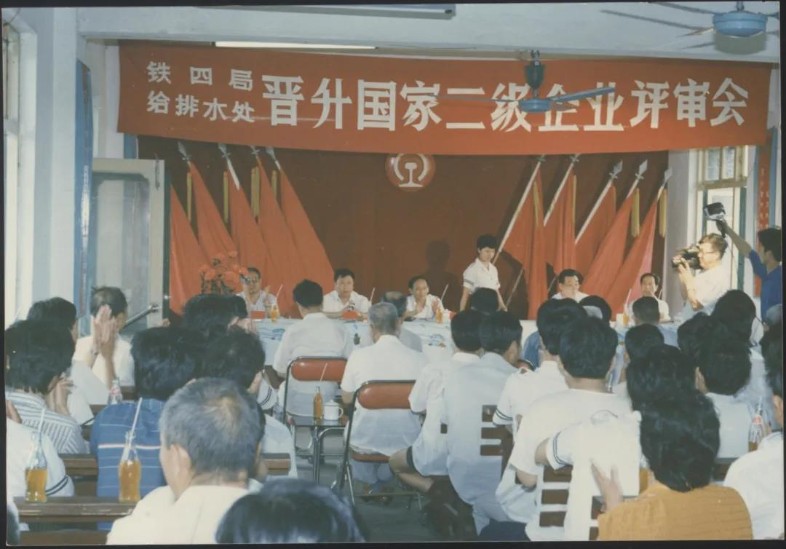 企業(yè)升級是國家“七五”期間的中心任務(wù),圍繞著“抓管理、上等級、全面提高素質(zhì)”的工作要求,全處廣泛宣傳發(fā)動(dòng)。從加強(qiáng)基礎(chǔ)工作入手,成立領(lǐng)導(dǎo)小組和企管辦,圍繞安全、質(zhì)量、效益等重點(diǎn),廣泛開展標(biāo)準(zhǔn)化、計(jì)量、能耗、檔案、普法、全面質(zhì)量管理、班組建設(shè)等專項(xiàng)達(dá)標(biāo)升級。機(jī)關(guān)各部門、各單位對照“方針目標(biāo)任務(wù)展開表(類似于現(xiàn)在管理矩陣、責(zé)任清單)開展資料“補(bǔ)強(qiáng)”工作。1990年,給排水工程處通過鐵道部評審組考核驗(yàn)收,成為全局第一家晉升國家二級企業(yè)的單位,全處職工每人都晉升了一級標(biāo)準(zhǔn)工資,更重要的是剛剛成為獨(dú)立法人不久的給排水處整體管理理念和綜合素質(zhì)有了顯著提升。處相繼榮獲全國五一勞動(dòng)獎(jiǎng)狀、全國先進(jìn)施工企業(yè)等榮譽(yù),成為名噪一時(shí)的鐵四局“四小龍”之一,無論是企業(yè)管理、經(jīng)濟(jì)效益還是員工風(fēng)貌,都成為全局標(biāo)桿。