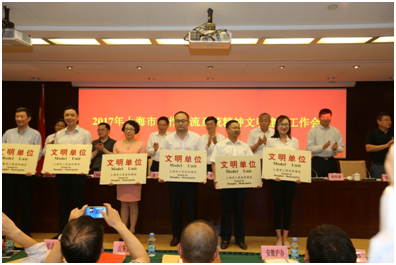 6月6日,2017年上海市合作交流系統(tǒng)精神文明建設(shè)大會(huì)在上海市市政大廈召開(kāi),會(huì)上,合作交流黨委向榮獲十八屆上海市文明單位榮譽(yù)稱(chēng)號(hào)的單位頒發(fā)了獎(jiǎng)牌、獎(jiǎng)狀。作為獲獎(jiǎng)單位,公司執(zhí)行董事、黨委書(shū)記尹朝援出席會(huì)議并代表公司接受了合作交流黨委的表彰。自公司重組、東遷上海以來(lái),公司黨委主動(dòng)與上海地方政府部門(mén)取得工作對(duì)接,積極融入上海市精神文明創(chuàng)建體系,經(jīng)過(guò)不懈努力,連續(xù)兩屆榮獲上海市合作交流系統(tǒng)文明單位榮譽(yù)稱(chēng)號(hào)。在此基礎(chǔ)上,公司黨委繼續(xù)狠抓精神文明建設(shè),全面貫徹落實(shí)黨的十八大和黨的十八屆三中、四中、五中、六中全會(huì)精神,深入學(xué)習(xí)貫徹習(xí)近平總書(shū)記系列重要講話(huà)精神,以培育和踐行社會(huì)主義核心價(jià)值觀為根本,堅(jiān)持圍繞中心、服務(wù)大局、立足實(shí)際、注重實(shí)效,深入開(kāi)展群眾性精神文明創(chuàng)建活動(dòng),推動(dòng)物質(zhì)文明和精神文明協(xié)調(diào)發(fā)展。在第十八屆(2015-2016年度)上海市文明單位創(chuàng)建期間,構(gòu)筑了完善的創(chuàng)建體系,形成了黨政工團(tuán)齊抓共管的創(chuàng)建格局,努力打造建筑精品,積極履行社會(huì)責(zé)任,促進(jìn)了企業(yè)全面協(xié)調(diào)可持續(xù)發(fā)展。